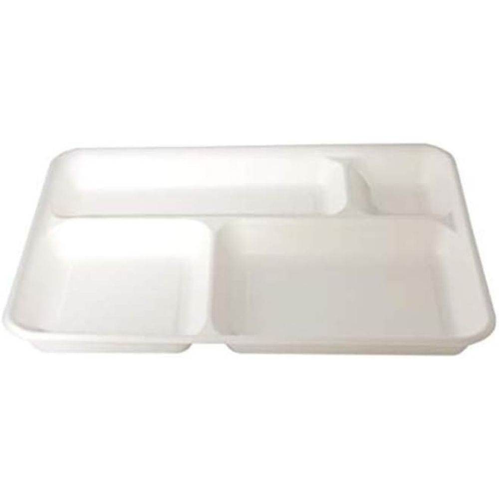 20 PZ Vassoio Rettangolare 4 scomparti BIOCOMPOSTABILE 37x27 cm byo