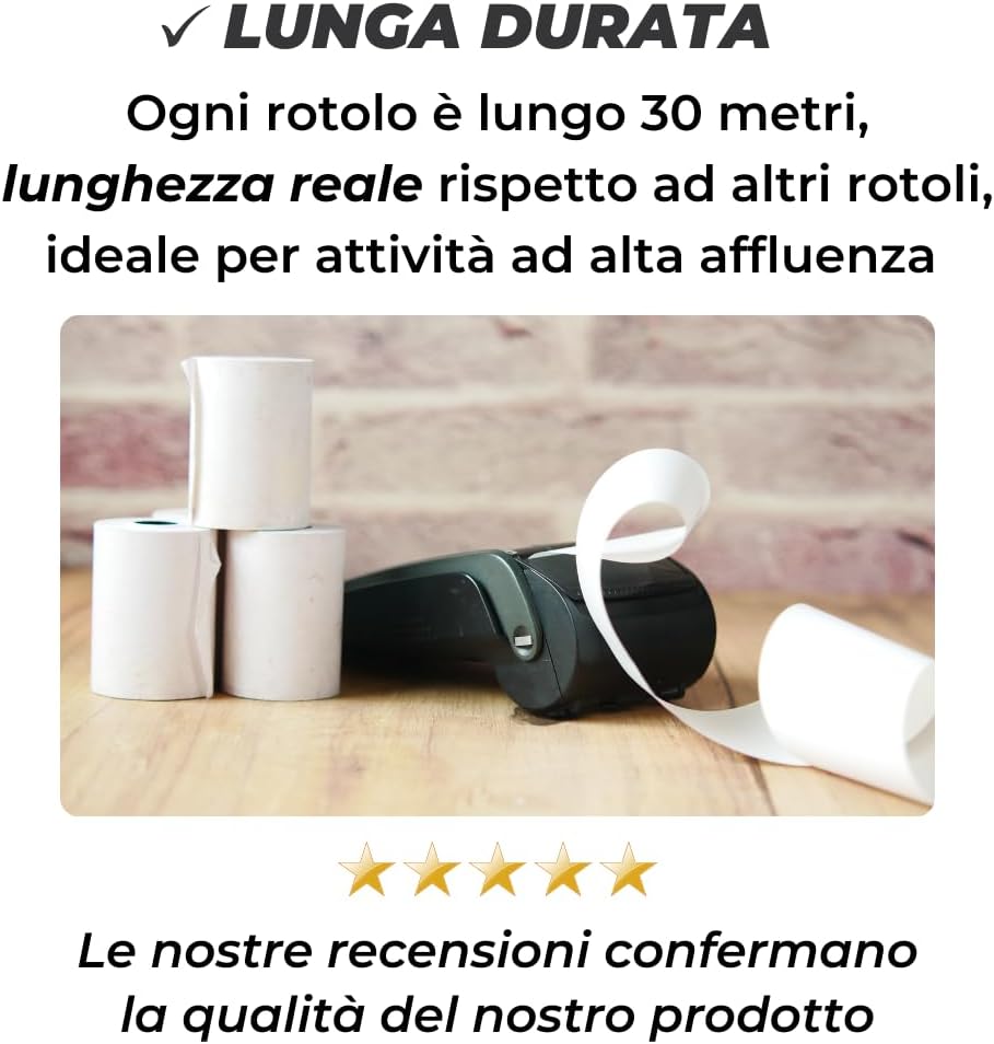 10 Rotoli Termici Omologati 57x30 mm – Carta per Registratore di Cassa, POS e Stampanti Fiscali Affidati alla qualità e alla conformità con i rotoli termici omologati 57x30 mm, ideali per registratori di cassa, stampanti fiscali e dispositivi POS. Realizzati in carta termica ad alta resa, garantiscono una stampa nitida e duratura, perfetta per scontrini fiscali, ricevute e report giornalieri. Ogni rotolo è omologato secondo le normative vigenti, compatibile con i registratori telematici e certificato per l’emissione di documenti fiscali. La confezione da 10 pezzi è pensata per negozi, bar, ristoranti, farmacie, tabaccherie e tutte le attività commerciali che necessitano di una scorta affidabile e professionale. ✅ Formato standard 57x30 mm – compatibilità universale ✅ Carta termica omologata per uso fiscale ✅ Stampa nitida, resistente e priva di BPA ✅ Ideale per registratori di cassa, POS e stampanti fiscali ✅ Confezione da 10 rotoli – praticità e convenienza Scegli i rotoli termici omologati per una gestione fiscale precisa e professionale: sicuri, compatibili e pronti all’uso.