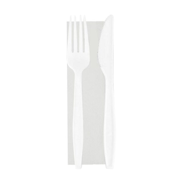 50 BIS Posate Riutilizzabili forchetta + coltello BIANCO e tovagliolo