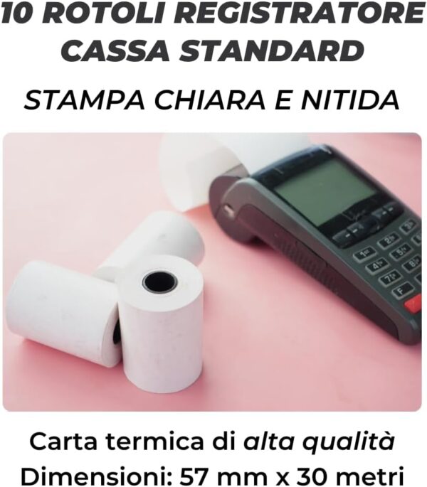 10 Rotoli Termici Omologati 57×30 mm – Carta per Registratore di Cassa, POS e Stampanti Fiscali