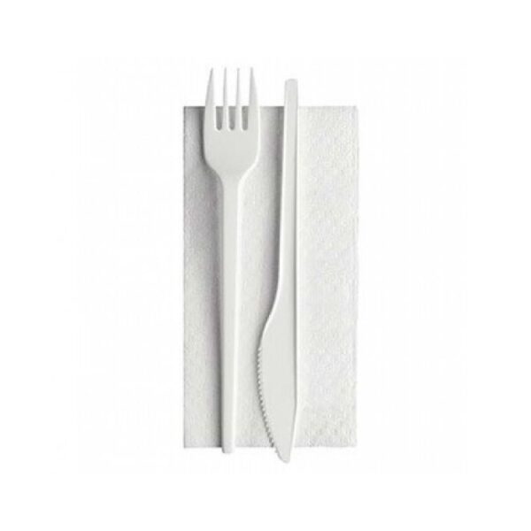 Set Posate forchetta + coltello biocompostabile imbustato con tovagliolo